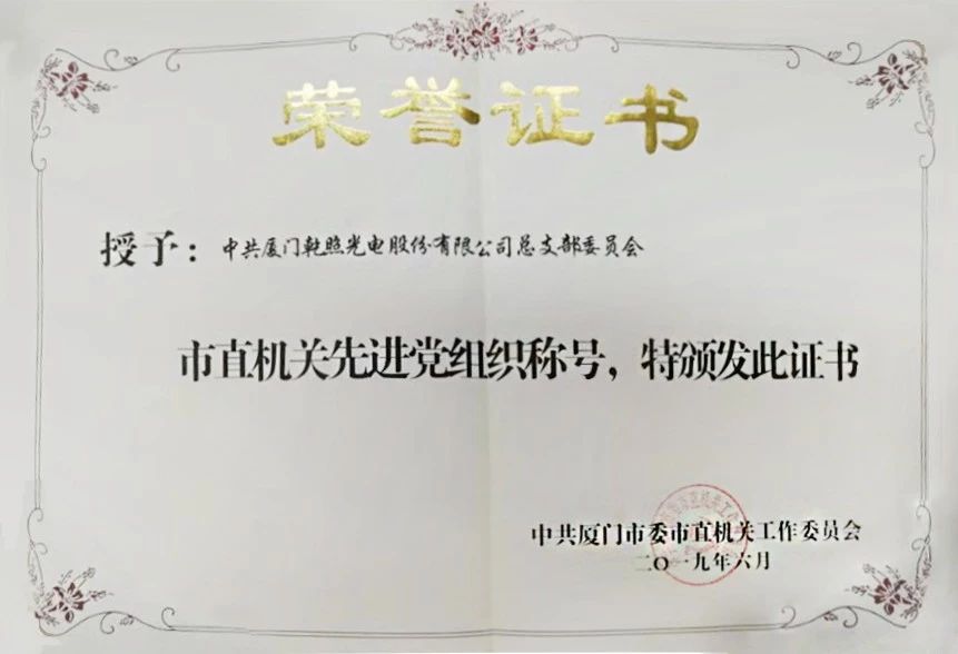 乾照光電黨總支獲評 “廈門市直機關(guān)先進黨組織”