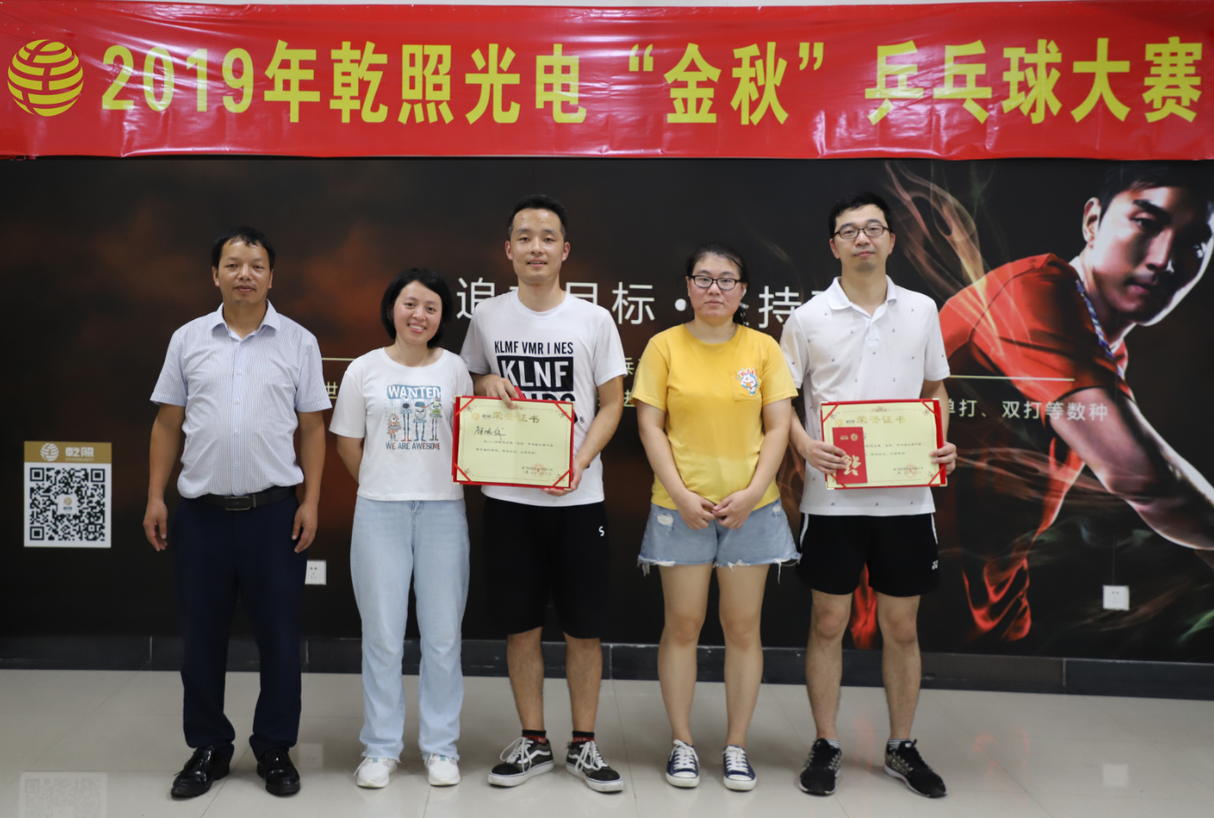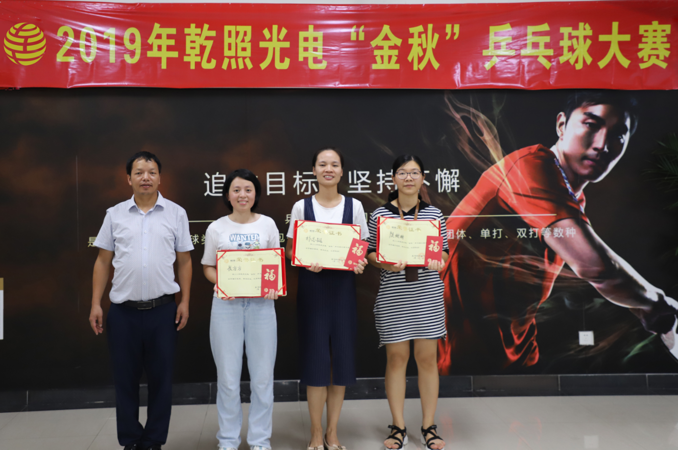 8月19日—26日,乾照光電乒乓球社舉辦了2019年乒乓球大賽。經過海選賽、復賽、半決賽和決賽的激烈角逐,最終品管部周耀東、芯片制造部侯福山、總裁辦解鵬越、整合部林鋒杰分別獲得男子單打冠、亞、季軍和第四名;品管部顏姍姍、未來顯示研究院段方方和銷售管理部林志鋌分別獲得女子單打冠、亞、季軍;品管部周耀東、技術中心陳婉菁和總裁辦解鵬越、未來顯示研究院馮妍雪分別獲得男女混雙冠軍和亞軍。通過本次球賽,賽出了成績,也賽出了風采。運動與快樂并行,高效與實力同在!