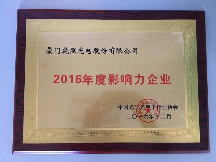 2016年12月6日,由中國光學光電子行業協會主辦的2016年度中國光電行業優秀企業頒獎典禮在北京落下帷幕。乾照光電憑借在光電行業突出的影響力,摘得2016年度中國光電行業“影響力企業”榮譽。