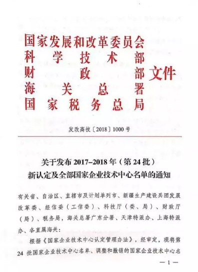 最近,國家發展改革委辦公廳正式發布2017-2018年(第24批)新認定及全部國家企業技術中心名單。此次全國共認定112家國家企業技術中心,福建省共6家企業獲此榮譽,“廈門乾照光電股份有限公司”榜上有名!
