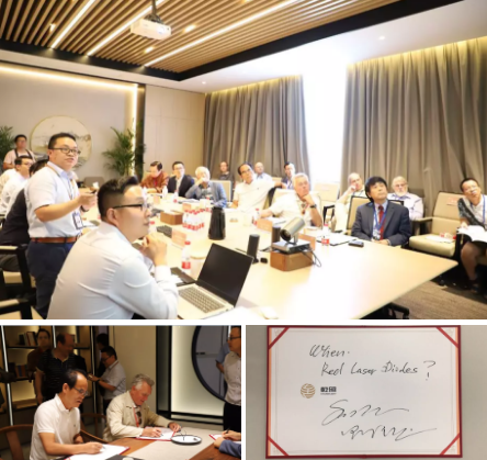 不謀全局者不足以謀一域。乾照光電積極構(gòu)筑制造業(yè)總部,大力布局化合物半導(dǎo)體領(lǐng)域前沿項目。在廈門、南昌、揚州布局藍綠光LED外延片和芯片、砷化鎵新型太陽能電池、3D感測激光VCSEL芯片、Mini LED和MicroLED芯片規(guī)模化量產(chǎn)等前沿產(chǎn)業(yè)項目。中村教授對乾照光電未來的規(guī)劃表示贊賞,他說,乾照光電已經(jīng)擁有了全色系的LED產(chǎn)品,這是很大的優(yōu)勢,相信公司一定會有很好的前景,同時也勉勵乾照光電年青的科研團隊要“Stay hungry”(保持對知識的渴望)。中村教授離開公司前,寫下了 “When Red Laser Diodes?”的寄語,激勵乾照光電要始終走在產(chǎn)業(yè)的最前沿。