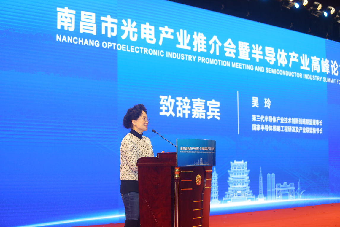 吳玲秘書長在致辭中指出,回顧半導體照明十余年的發展,我國從無到有、從小到大,特別是芯片的國產率已接近80%。但國際環境的變化、經濟下行的壓力,導致半導體照明產業增速放緩,整個LED行業處于寒冬。在南昌市政府的大力支持下,南昌市的半導體產業仍然保持了良好的發展態勢。越是艱難,越能發現機會。她相信隨著LED芯片功能的進一步開發,未來還將會有很大的發展空間。她也相信半導體照明這個戰略性的新興產業,做為第三代半導體第一個成功的應用,在智能信息化的綠色可持續發展中,必將越做越強。