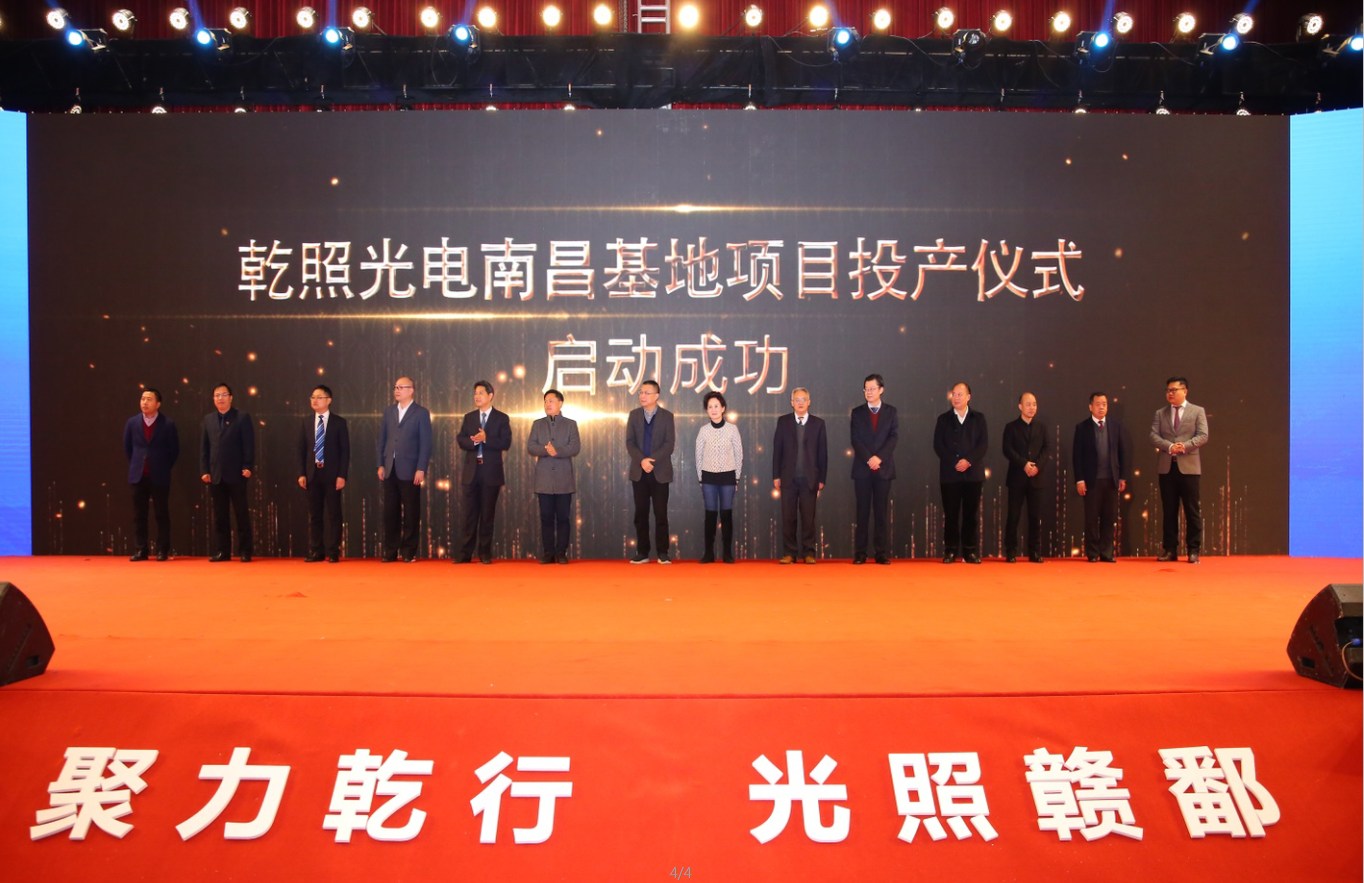 光電產業項目合作簽約儀式之后,江西省、南昌市、新建區黨政領導及參會的專家、企業代表與乾照光電董事長金章育、總裁蔡海防共同參加了乾照光電南昌基地項目投產儀式慶典。