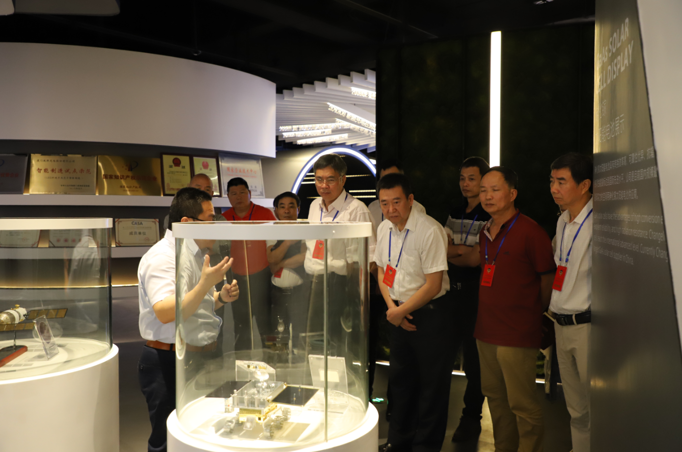 傅主席一行參觀了公司展廳,詳細(xì)了解了公司基本情況、產(chǎn)品信息、知識產(chǎn)權(quán)工作及未來規(guī)劃。而后,考察組一行參觀了藍(lán)綠事業(yè)部生產(chǎn)車間。在車間,傅主席一行聽取了外延片和芯片生產(chǎn)工藝流程介紹,察看了儀器設(shè)備運行情況,并對產(chǎn)線的自動化和智能化程度給予了高度肯定。
