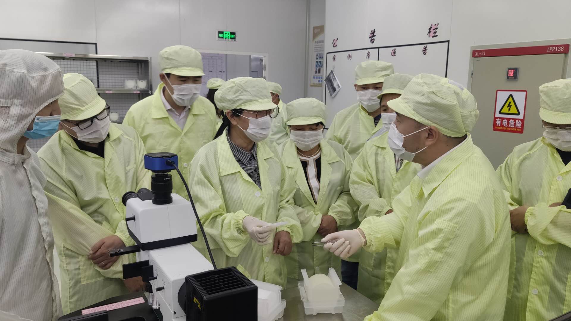 郭院長一行先后走訪了公司展廳及生產(chǎn)車間,認(rèn)真聽取了劉兆對江西乾照光電廠區(qū)整體規(guī)劃、項目發(fā)展建設(shè)、產(chǎn)品技術(shù)創(chuàng)新及應(yīng)用領(lǐng)域的介紹,并仔細(xì)觀摩了外延片的生產(chǎn)制作流程,針對外延片的制作工藝和質(zhì)檢程序進行了探討與交流。郭院長對公司智能化的生產(chǎn)技術(shù)設(shè)備及外延片芯片的制作工藝水平表示了高度的贊賞。
