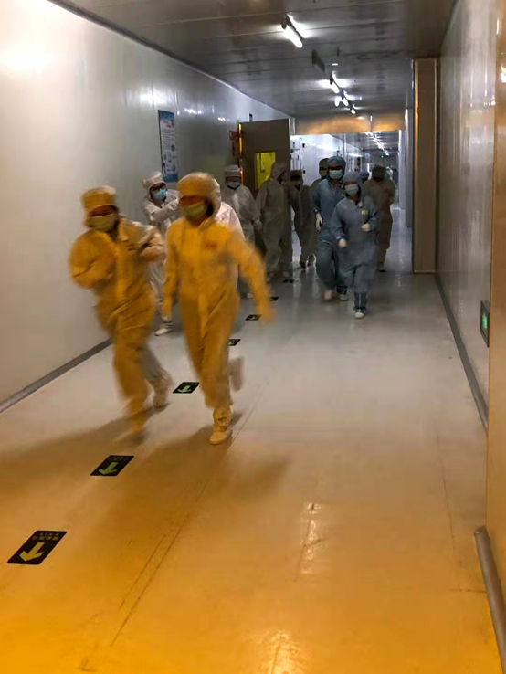 本次演練以16:19蒸鍍車間發(fā)生火災為假想場景,由初期自行應急處置和啟動應急響應機制兩部分組成。整個演練過程緊緊圍繞發(fā)現(xiàn)火情、預警及響應、應急處置、指揮協(xié)調(diào)、人員疏散、集合清點、接觸警報等重點環(huán)節(jié)展開。16:21應急疏散演練指揮部下達撤離命令,要求全體人員在疏散引導員組織下沿安全疏散通道快速撤離。16:24全體人員到達緊急疏散集合地點,合計耗時5分14秒。本次演練全程協(xié)調(diào)有序、示范性強,情景逼真。