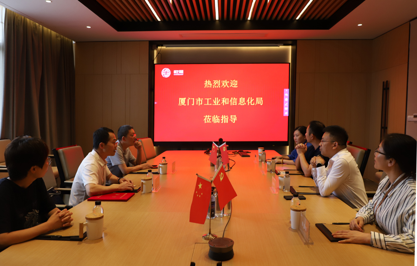 5月5日,廈門市工信局產業處陳秉佳處長、二級調研員邱忠強一行蒞臨乾照光電進行調研并授牌。乾照光電總裁崔恒平參加調研并接受授牌。