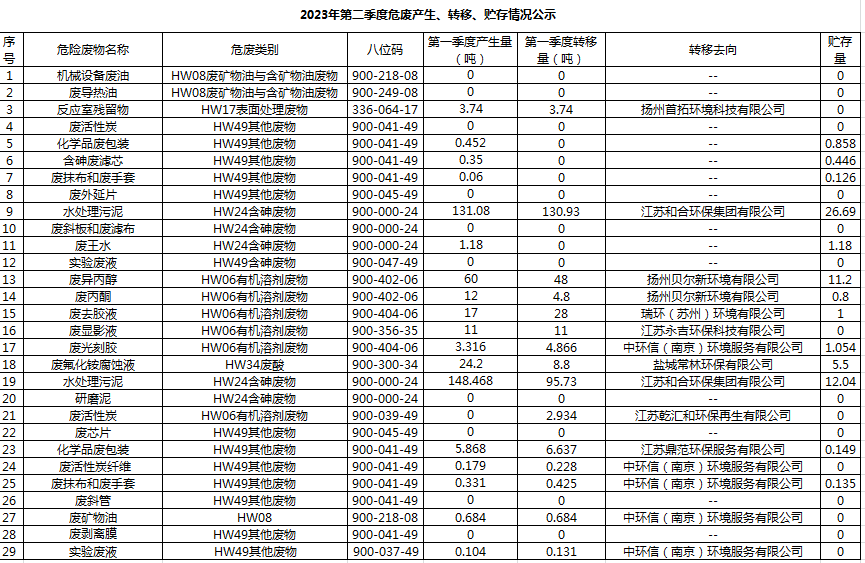 揚州乾照光電有限公司2023年第二季度危廢產(chǎn)生、轉(zhuǎn)移、貯存情況公示