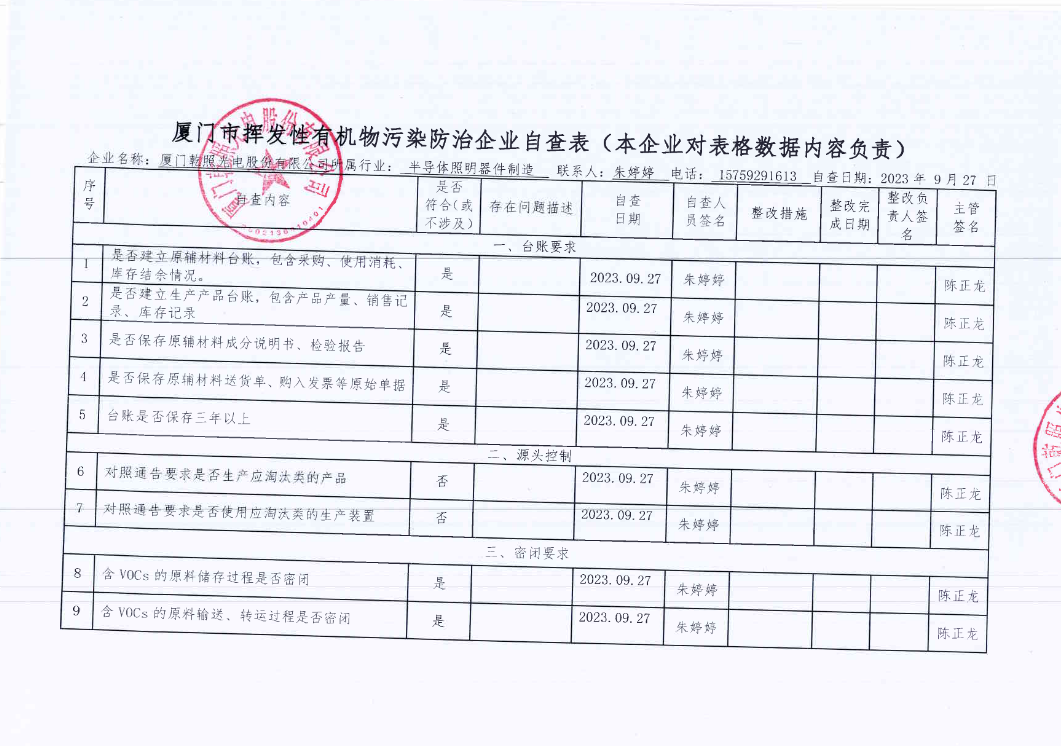 廈門市揮發(fā)性有機物污染防治企業(yè)自查表——廈門乾照光電股份有限公司