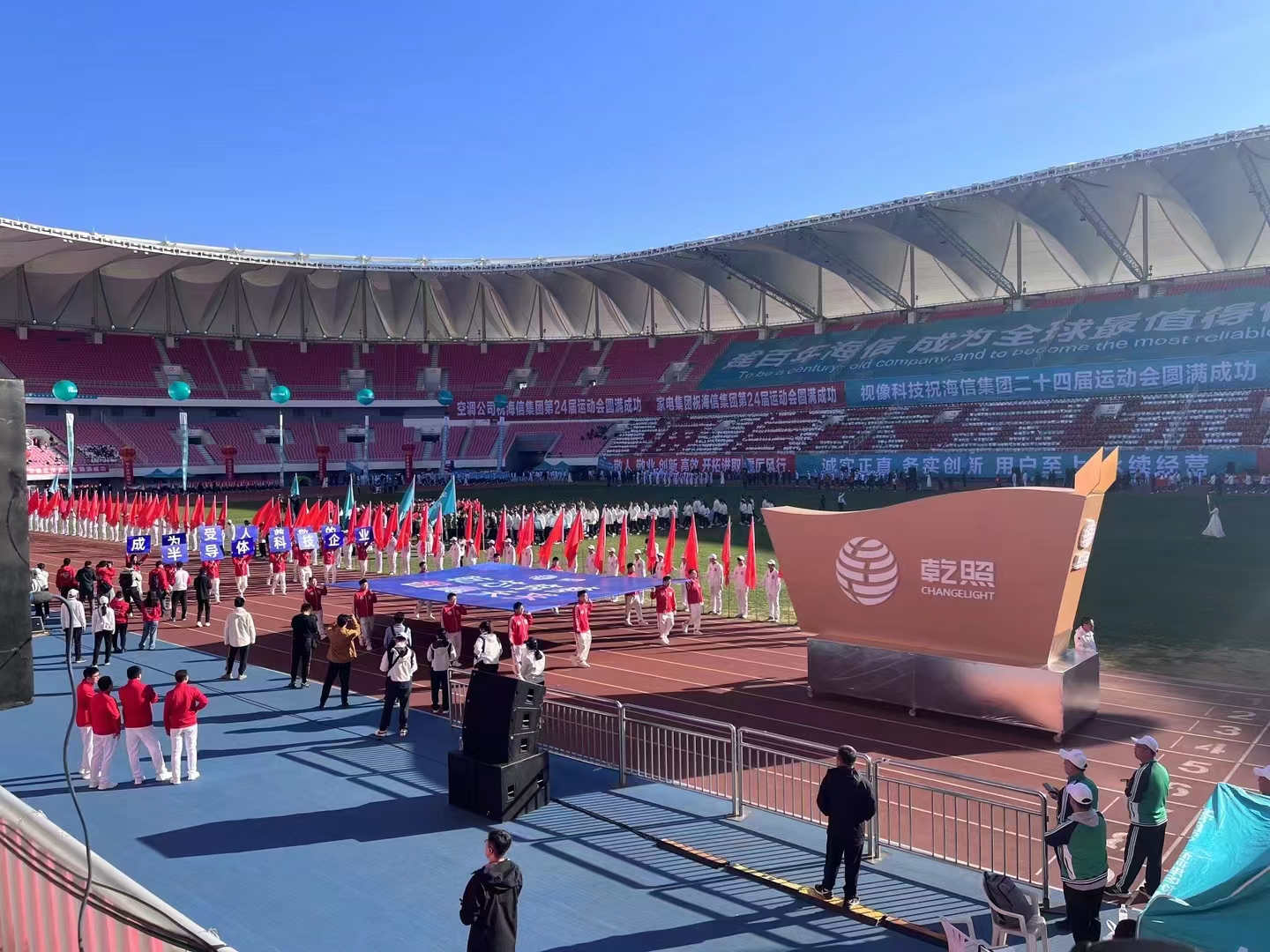 乾照光電于2023年10月21日參加在青島國信體育中心舉辦的海信集團第24屆運動會。乾照光電6位經營層領導與27位三地員工獨立組隊參加運動會入場式,接受海信集團領導及全海信集團干部員工的檢閱。乾照方陣人員個個精神飽滿,斗志高昂,每一步都是新的起點,每一步都充滿勝利的期望!