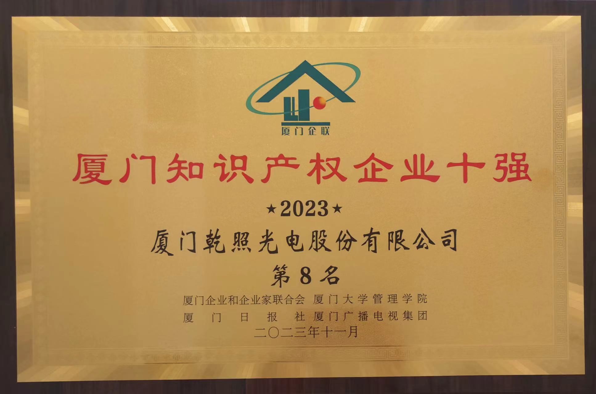 為了進(jìn)一步提升整個(gè)社會(huì)的知識(shí)產(chǎn)權(quán)意識(shí)及能力水平,為廈門(mén)市開(kāi)展國(guó)家知識(shí)產(chǎn)權(quán)強(qiáng)市建設(shè)示范工作發(fā)揮有效的推動(dòng)作用,今年廈門(mén)企業(yè)和企業(yè)家聯(lián)合會(huì)攜手廈門(mén)市知識(shí)產(chǎn)權(quán)協(xié)會(huì),首次重磅推出“2023廈門(mén)知識(shí)產(chǎn)權(quán)企業(yè)十強(qiáng)”榜單排序活動(dòng)。乾照光電從眾多申報(bào)企業(yè)中脫穎而出,榮獲“廈門(mén)知識(shí)產(chǎn)權(quán)企業(yè)十強(qiáng)”稱號(hào)。