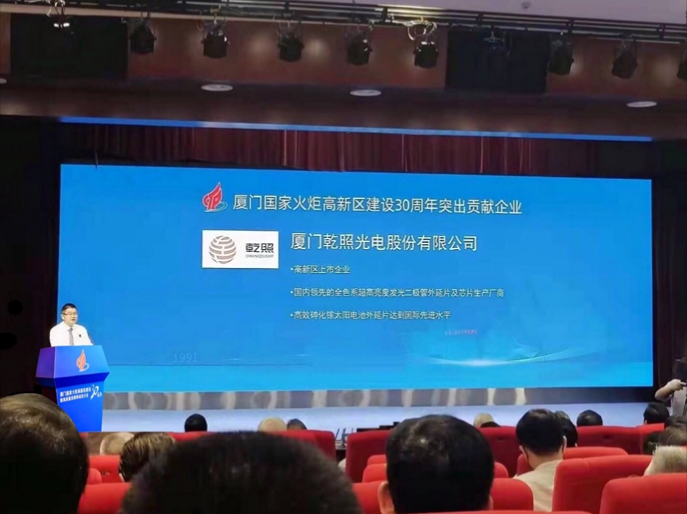 乾照光電榮獲“廈門國家火炬高新區建設30周年突出貢獻企業”稱號