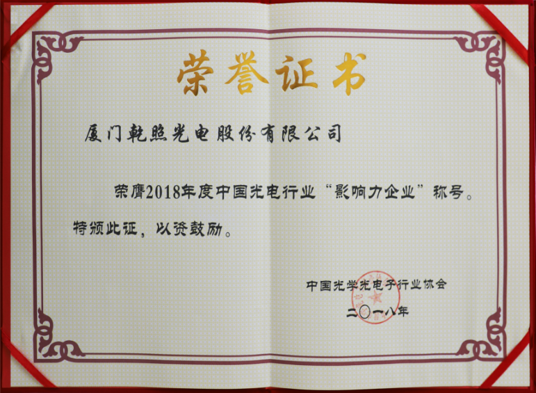 乾照光電榮獲2018年度中國光電行業“影響力企業”